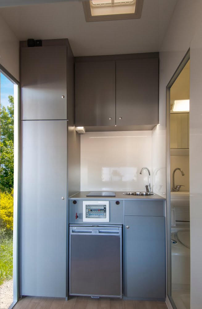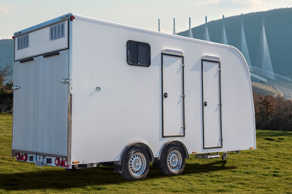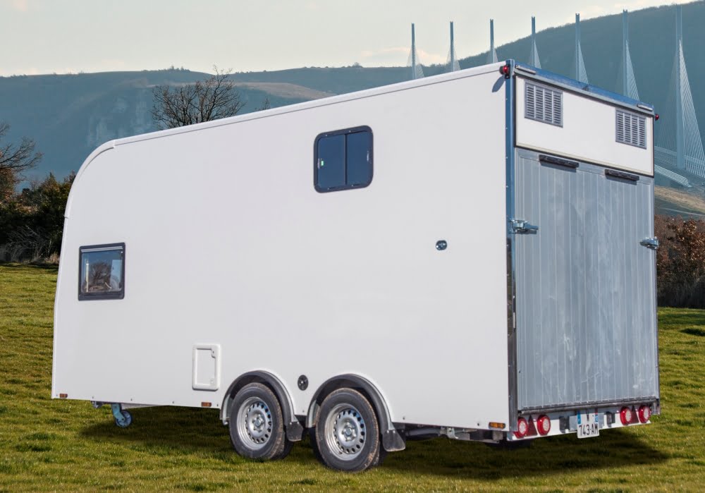 2-Pferdeanhänger mit Wohnbereich (Home-Car), ausgestattet mit 3 Schlafplätzen, Kochnische, Dusche und WC.