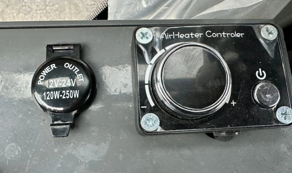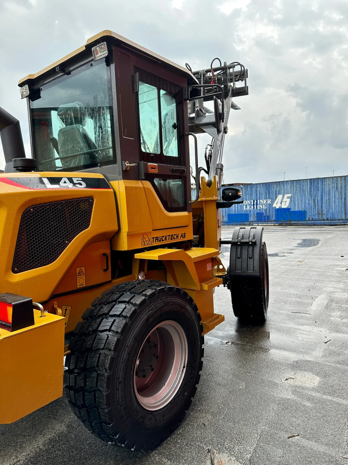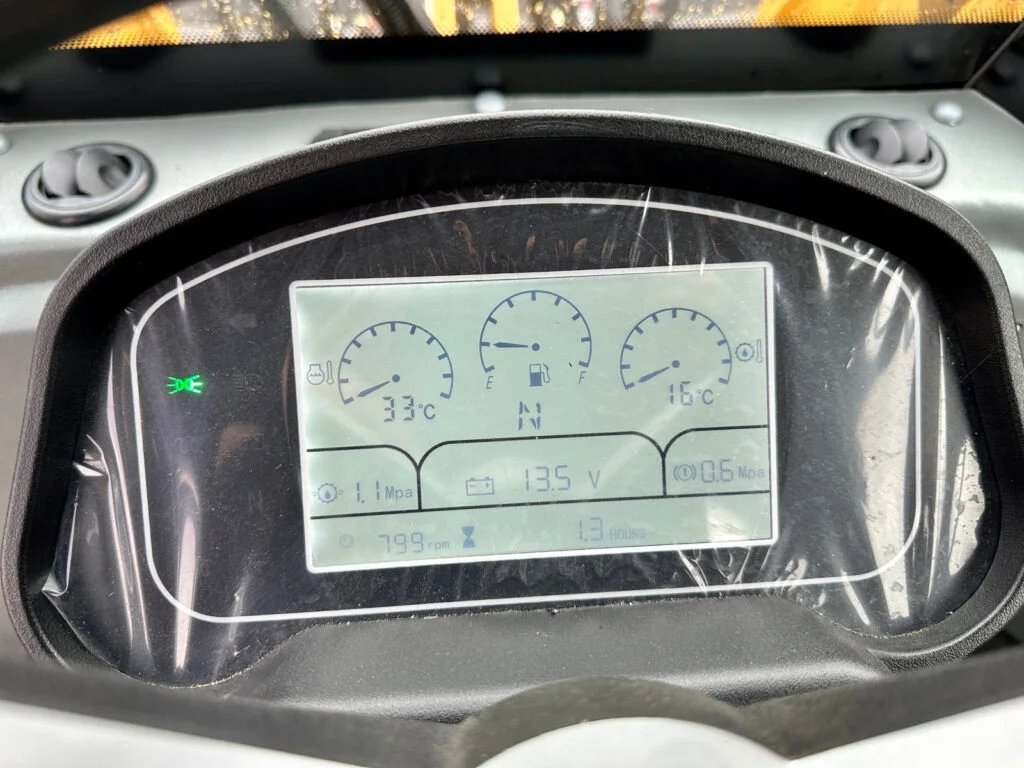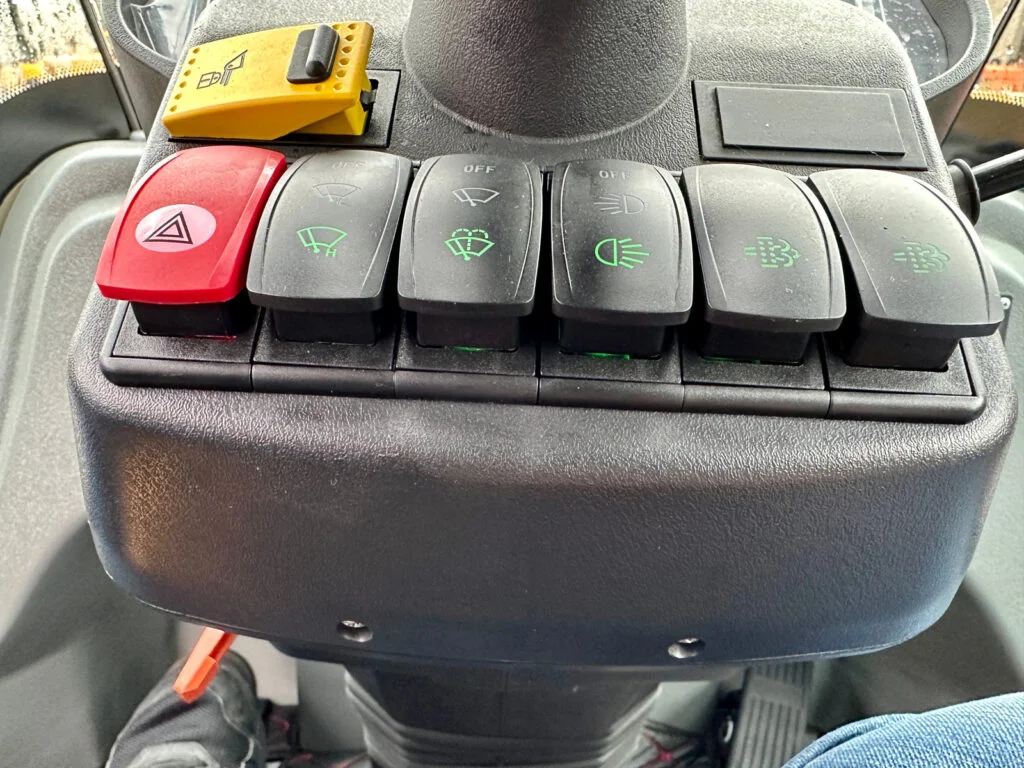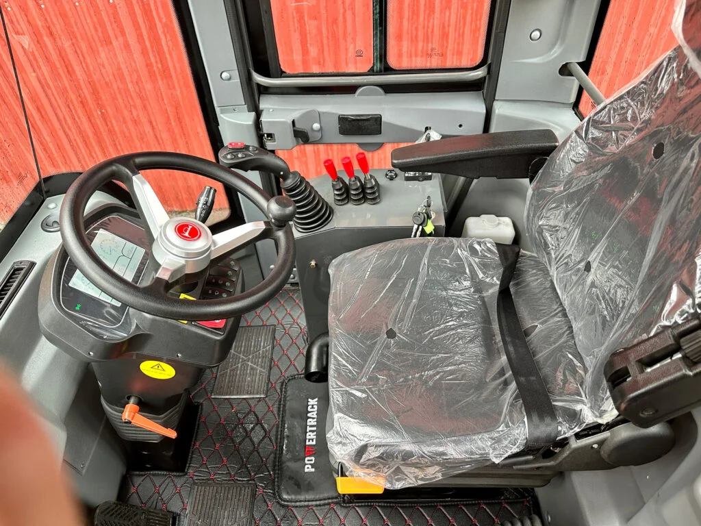 Die Kabine ist mit Heizung und Entfrostung, Scheibenwischer, verstellbarem Lenkrad sowie einer Rückfahrkamera ausgestattet.