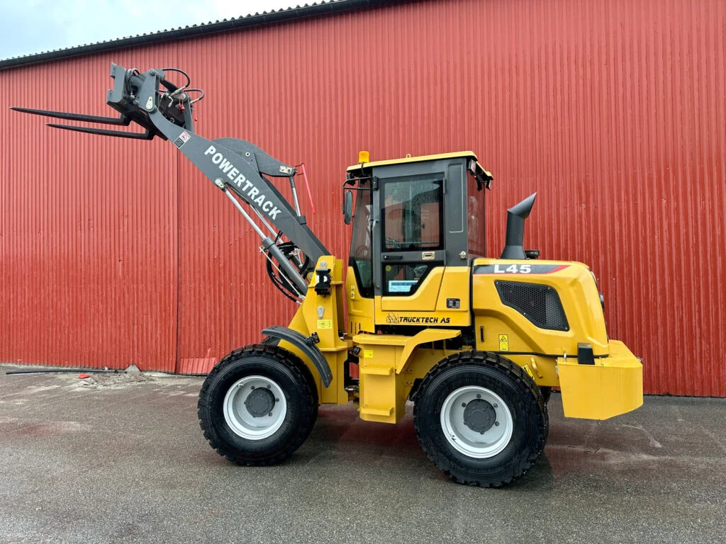 Voici une traduction professionnelle complète en allemand standard (Deutschland), structurée pour une fiche produit chargeuse / machine neuve POWERTRACK L45 (B2B / WooCommerce) :
