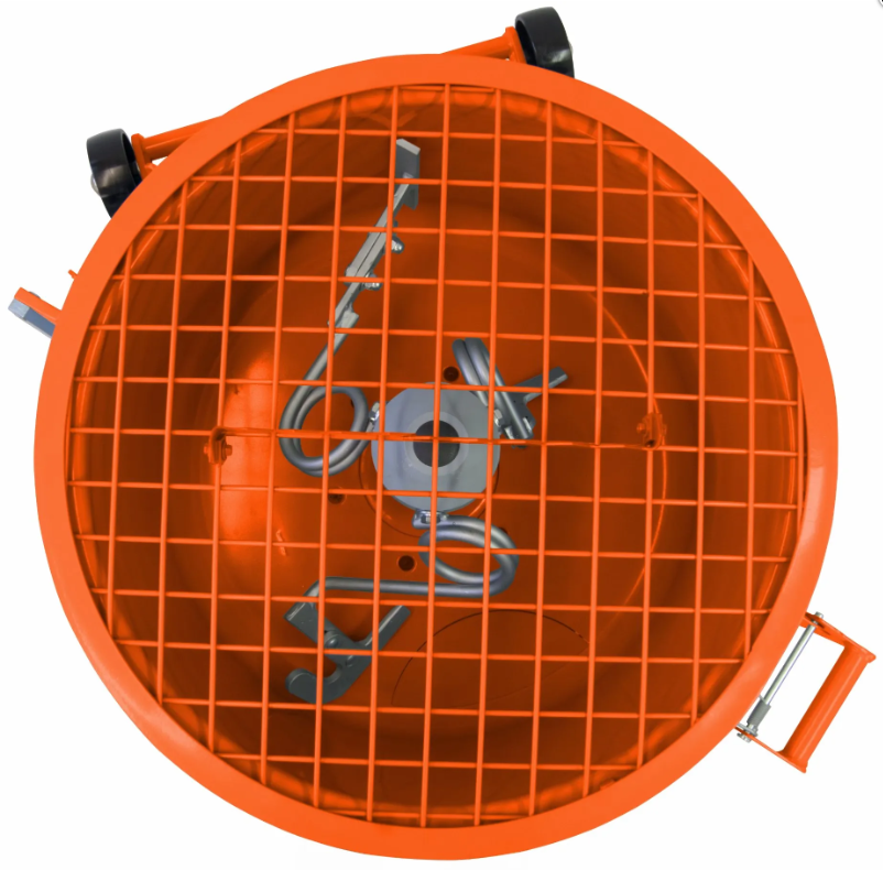 - Der im Trommelboden integrierte Segmentschieber und die klappbare Eimerkonsole gewährleisten eine sekundenschnelle Bodenentleerung in Eimer, Mörtelkübel oder bei hochgeklappter Eimerkonsole in eine Schubkarre.