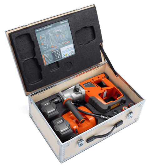 Der Husqvarna DM540i ist ein leistungsstarker Akku-Kernbohrmotor, der für das Handbohren von Bohrungen mit Durchmessern von bis zu 75mm optimiert ist. Er kann sowohl für Nass- als auch für Trockenbohrungen in Stahlbeton, Ziegelsteinen und leichtem Mauerwerk verwendet werden. In Kombination mit dem Bohrständer DS150 kann der DM540i für Bohrungen mit Durchmessern von bis zu 100mm eingesetzt werden. Dank integrierter Konnektivitätsfunktionen können Sie Maschinenstandort, Laufzeit und Wartungsintervalle einfach im Auge behalten sowie drahtlos Firmware-Updates über FOTA (Firmware Over The Air) erhalten. Die Stromversorgung erfolgt über Akkus der BLi-Serie, und die Maschine ist mit Husqvarna BLi200-/BLi300-Akkus kompatibel. Durch die einfache Bedienung und die außergewöhnlichen ergonomischen Eigenschaften (z.B. das geringe Gewicht und das ausgewogene Maschinenkörperdesign) eignet sich die Maschine ideal für das Bohren unter Spülbecken, in schwer zugänglichen Ecken oder in anderen engen Umgebungen. Weitere Anwendungen umfassen Bohrungen für Rohrleitungen, Steckdosen, Kabel sowie Lüftungs- und Klimaanlagen.