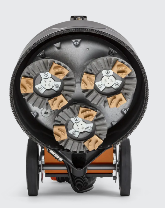 Die PG 5 ist eine kompakte und leistungsstarke Planetenbodenschleifmaschine mit drei Schleifscheiben und einem 4-kW-Motor. Sie ist für alle Anwendungen geeignet, vom Entfernen von Beschichtungen bis zum Schleifen und Polieren von Beton oder Naturstein. Die Maschine verfügt außerdem über das Sprühnebel-System „Mist Cooler“, das die Diamantwerkzeuge während des Betriebs kühlt, wodurch die Abtragsrate erheblich erhöht und das Risiko der Verglasung verringert wird (im Vergleich zur Verwendung ohne Mist Cooler System). Das Chassis kann für mehr Praktikabilität leicht vom Schleifkopf getrennt werden, und die Gewichte lassen sich vor dem Transport einfach abmontieren.