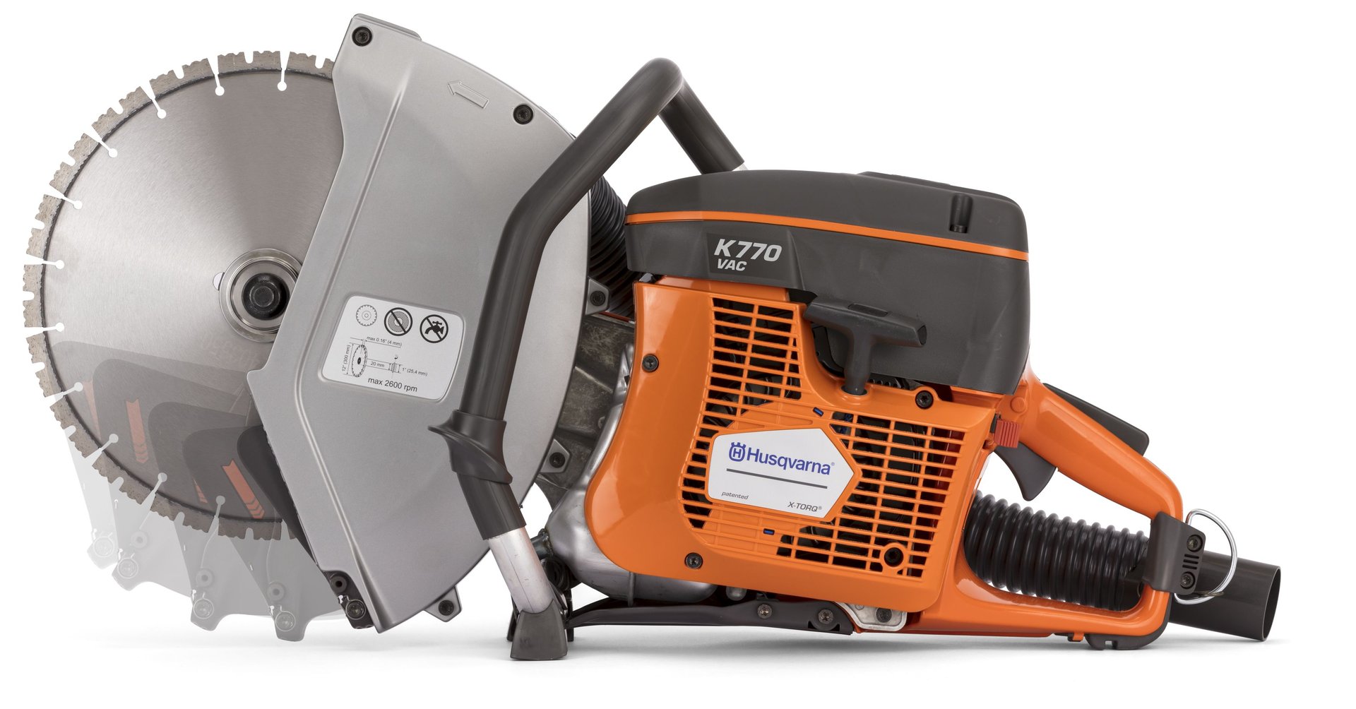Husqvarna K770 VAC ist ein leichter Trennschleifer zum Trockenschneiden mit Staubabsaugung. Leicht anzuschließender Saugschlauch. Maximale Schnitttiefe 122 mm. Verwendbar bevorzugt mit dem Husqvarna Sauger DE 110.