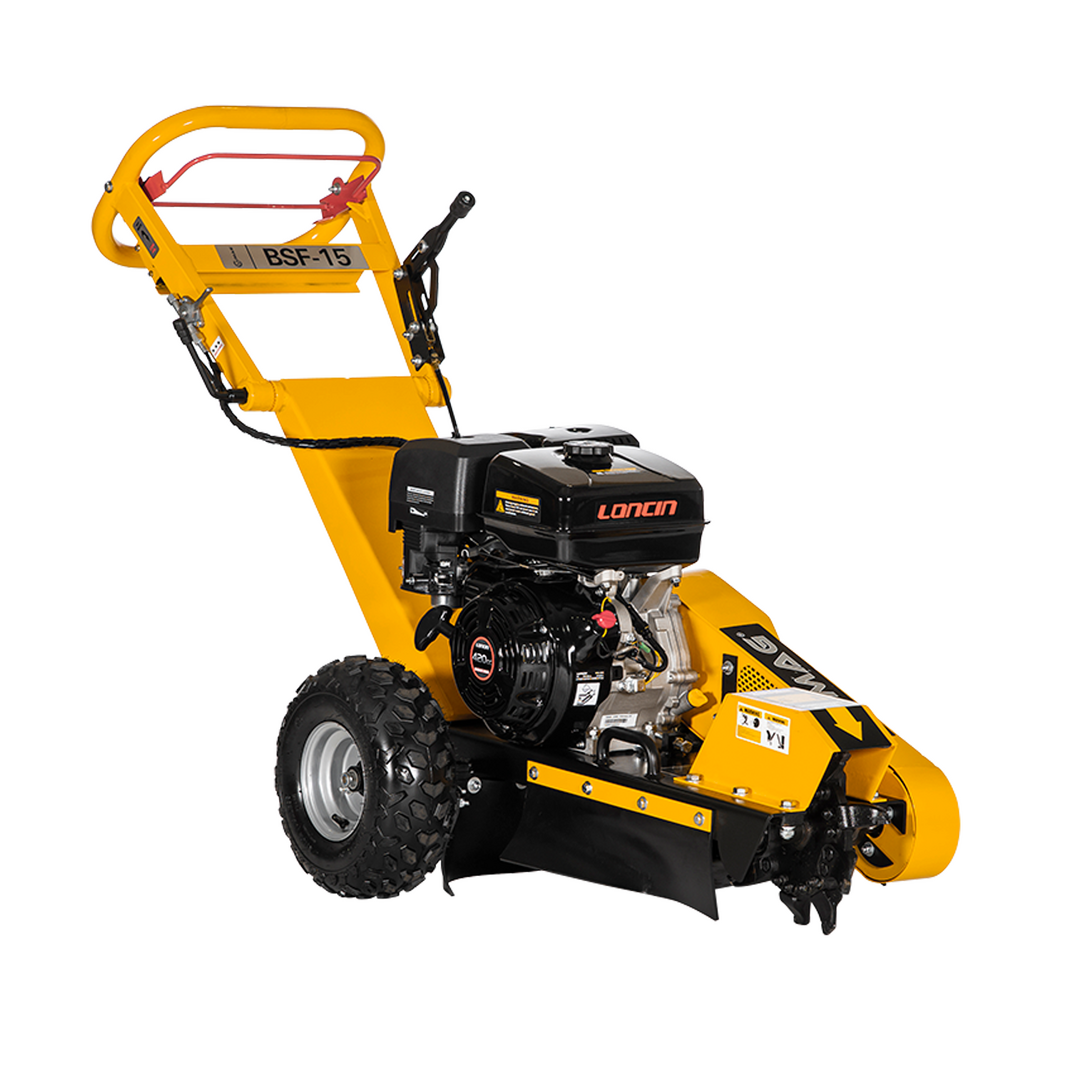 - Die BSF-15 ist ein leichtes, handliches Gerät und kann Baumstümpfe und Wurzelwerk von 600 mm über der Bodenhöhe bis 235 mm unter Bodenhöhe klein fräsen
