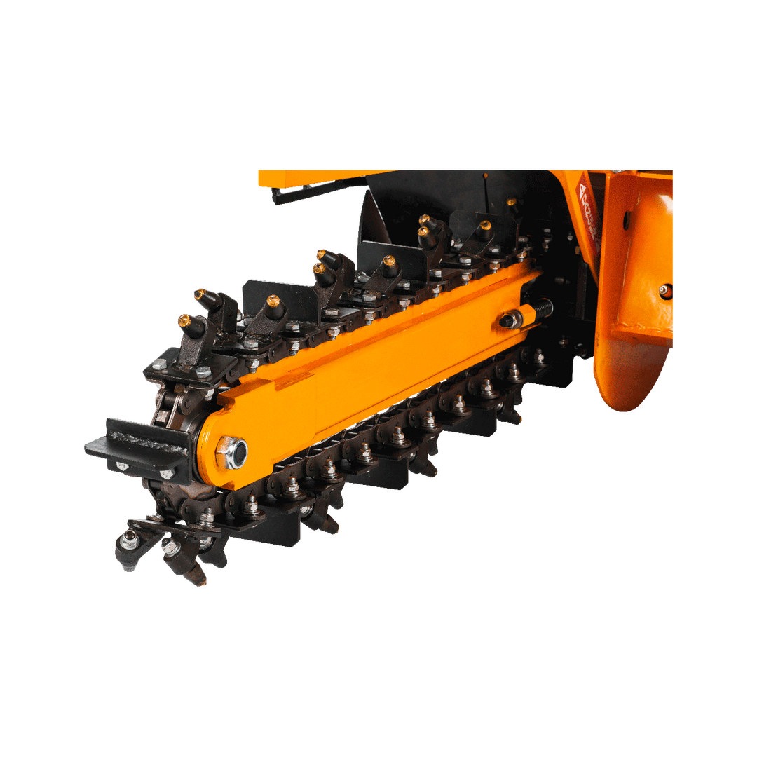 Die Lumag GF-800 ist eine leistungsstarke Grabenfräse zum Ausheben von schmalen Gräben zur Verlegung von Rohr- und Stromleitungen. Die robuste Bauweise und einfache Bedienung machen sie zu einem Muss für professionelle Anwender. Mit ihrem besonders langen Schwert kann die GF-800 eine maximale Grabtiefe von 60 cm und eine Grabbreite von 10 cm erreichen. Dabei sorgt eine Schnecke dafür, dass das ausgehobene Erdreich effektiv beseitigt wird und ein besonders sauberes Ergebnis erzielt wird. Die Kette der Grabenfräse ist mit Hartmetall bestückten Zähnen ausgestattet, die auch härtestes Erdreich mühelos zerkleinern. Dank ihrer hohen Leistungsfähigkeit und Robustheit ist die GF-800 eine zuverlässige und effektive Wahl für den professionellen Einsatz.