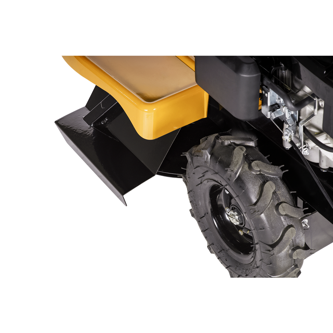 - Mit dem leistungsstarken Motor und einer Ackerstollenbereifung wird das Mähen auch im anspruchsvollen Gelände sehr erleichtert