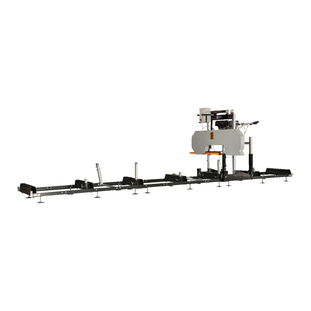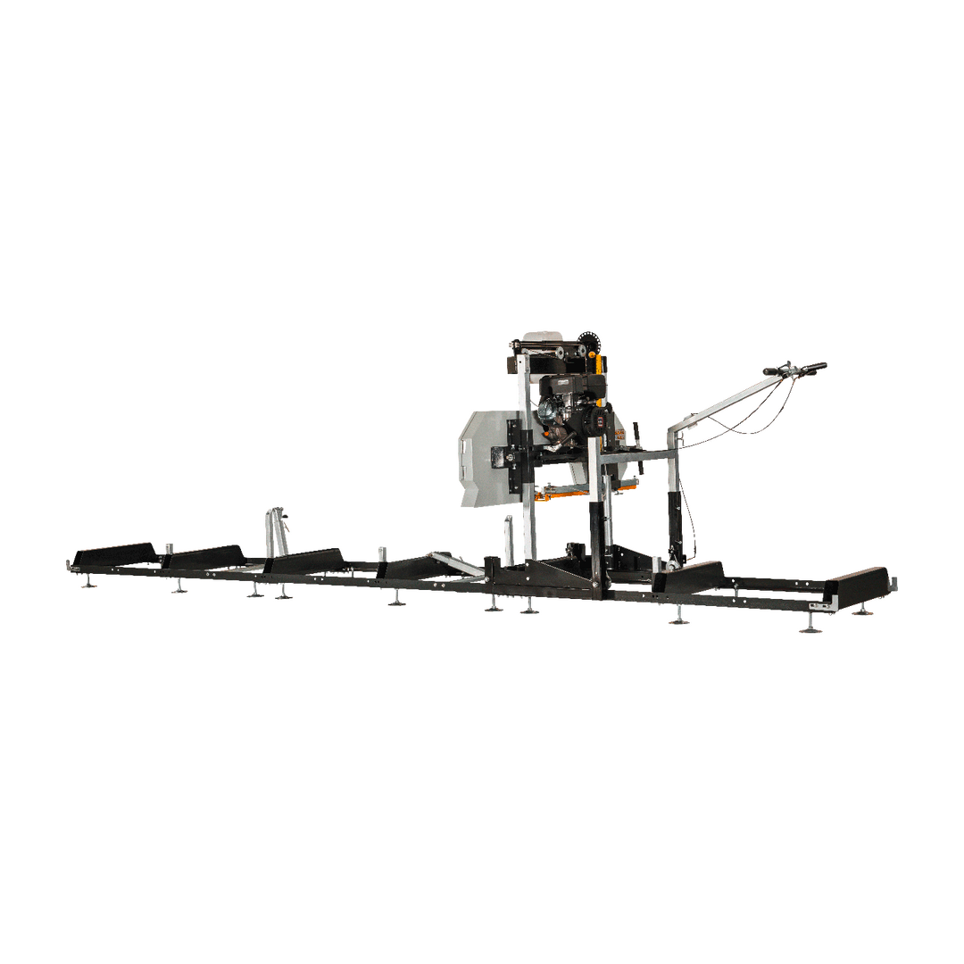 Das Benzin-Blockbandsägewerk BSW66GL ist eine leistungsstarke Maschine für präzises Sägen von weichem, hartem und trockenem Holz. Die Antriebsräder sorgen für einen ruhigen Lauf und eine besonders hohe Genauigkeit beim Sägen. In der Standardausführung ist das Sägewerk für die Bearbeitung von 5m langen Holzstämmen geeignet. Das Bandsägewerk kann jedoch optional beliebig verlängert werden, um auch längere Stämme bearbeiten zu können. Im Lieferumfang enthalten sind ein Bausatz für die Blockbandsäge sowie ein Sägeband SL-Flex (3680 x 35 x 1,1mm) und ein 10 L Kühlmittelbehälter. Mit dem leistungsstarken Benzinmotor arbeiten Sie auch bei großen Stämmen effektiv und zügig. Das BSW66GL ist die ideale Maschine für Forstbetriebe, Sägewerke und Holzverarbeiter, die auf hohe Präzision und Leistung setzen.