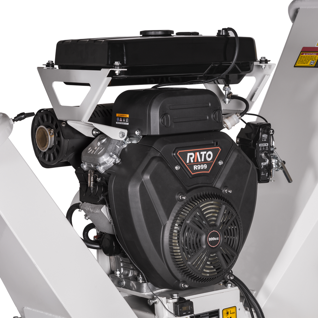 - Der RAMBO-V2 mit seinem leistungsstarken 24,5 kW, V-2-Zylinder Motor zerkleinert mühelos Astwerk bis zu einer Stärke von Ø 150 mm