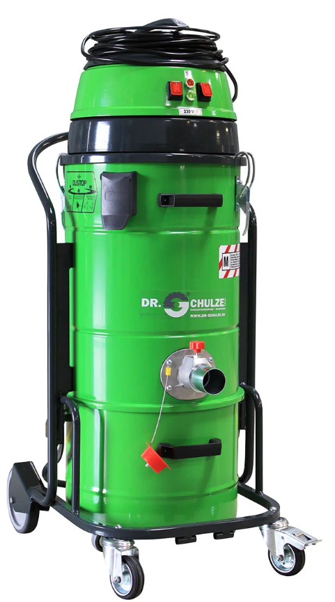 Mobiler und kompakter Staubsauger (2,3 kW / 230 V / 360 m³/h) mit manuellem Filterreinigungssystem für Einsatz mit kleineren Bodenschleif- und Fräsmaschinen.